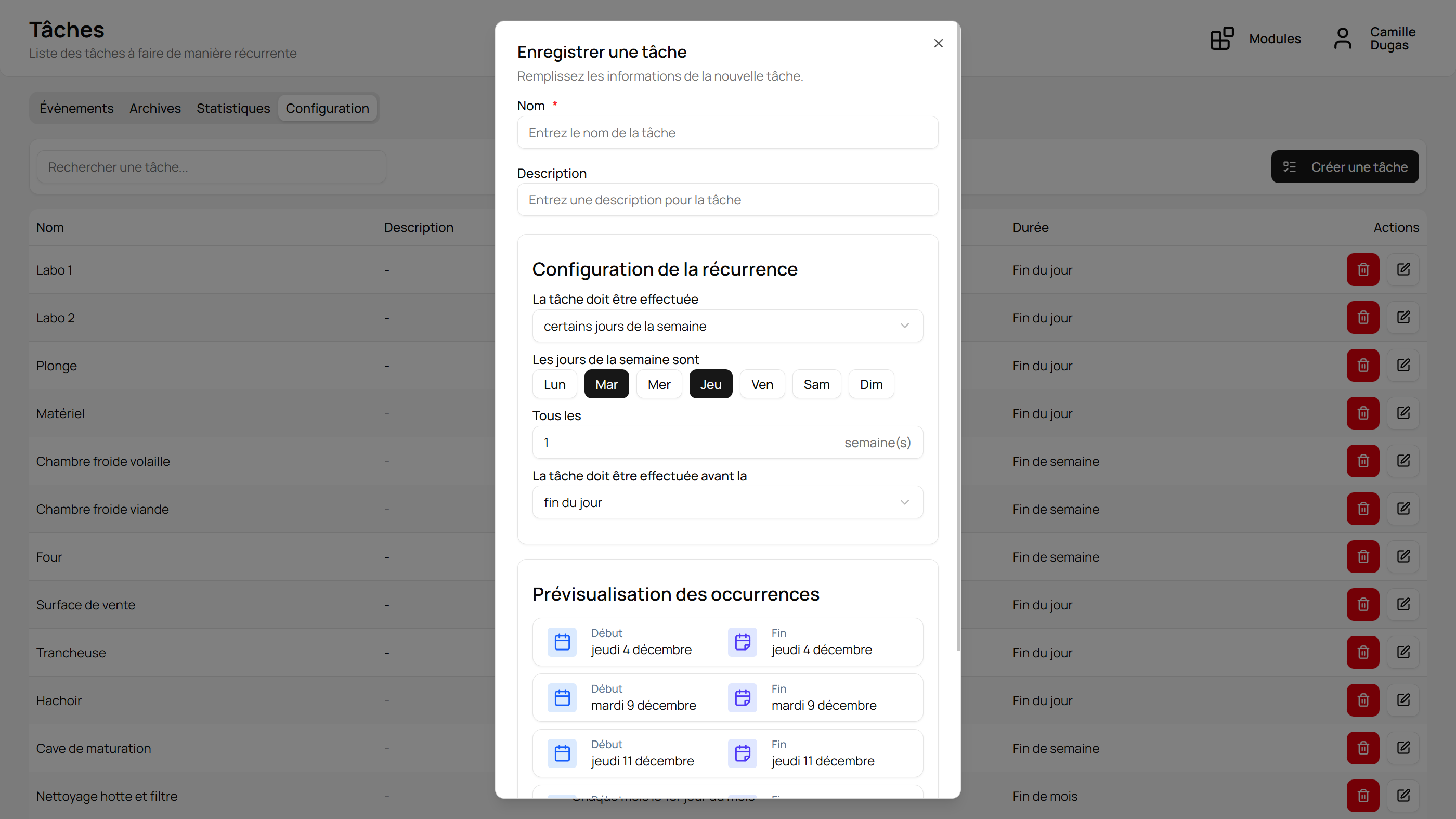 - Tâches récurrentes configurables